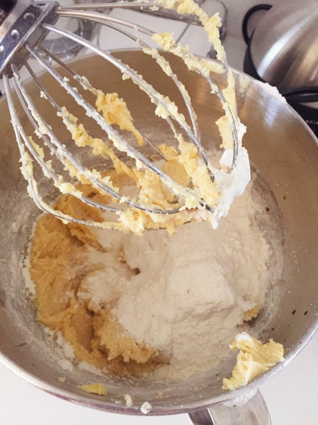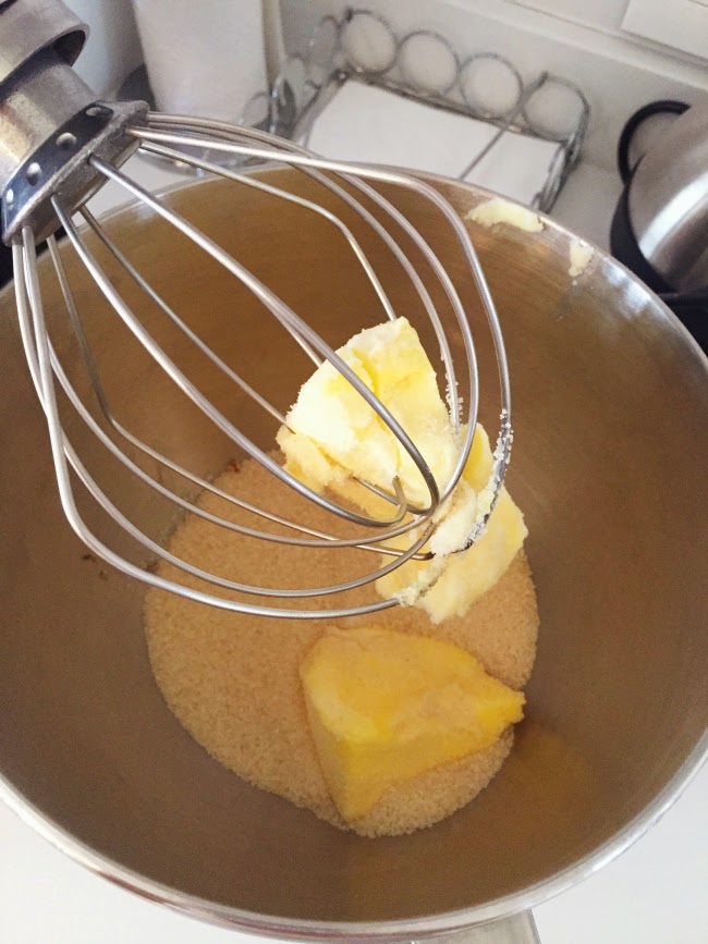 - In the electric mixer, combine the butter and both sugars. Beat on medium until light and fluffy.