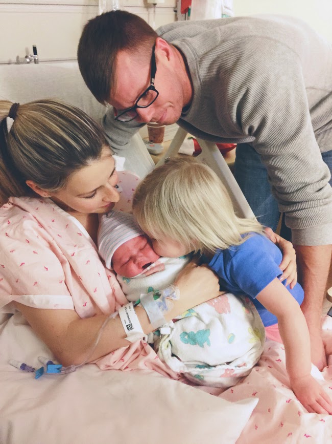 Both of my pregnancies went fairly smoothly. Besides nauseau and vomiting in the first 16 weeks, I made it through pregnancy just fine. I had a few scary complications with my first pregnancy (my daughter Andie) and we were hospitalized at 29 weeks because her heart rate kept dipping. They monitored me in the hospital for a couple days and released me on bed rest and I had to do stress-test monitoring a couple times a week. I ended up getting induced for something called IUGR (Irregular Uterine Growth Restriction) and she arrived almost 3 weeks early, but still weighed in at a healthy 5 pounds and 15 ounces. My son, Nolan, who is almost 3 months old, came on his own at just over 37 weeks, and he was a solid 8 pounds. Both of my labors and deliveries were fairly quick and I pushed for less than 10-15 minutes with both kids. The moment they both came out is something so surreal, there will never be words to express my feelings during those exact moments, it’s intense and so incredibly special.